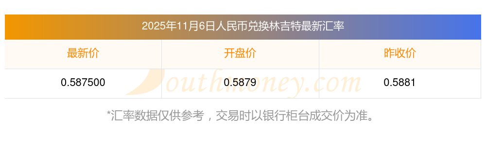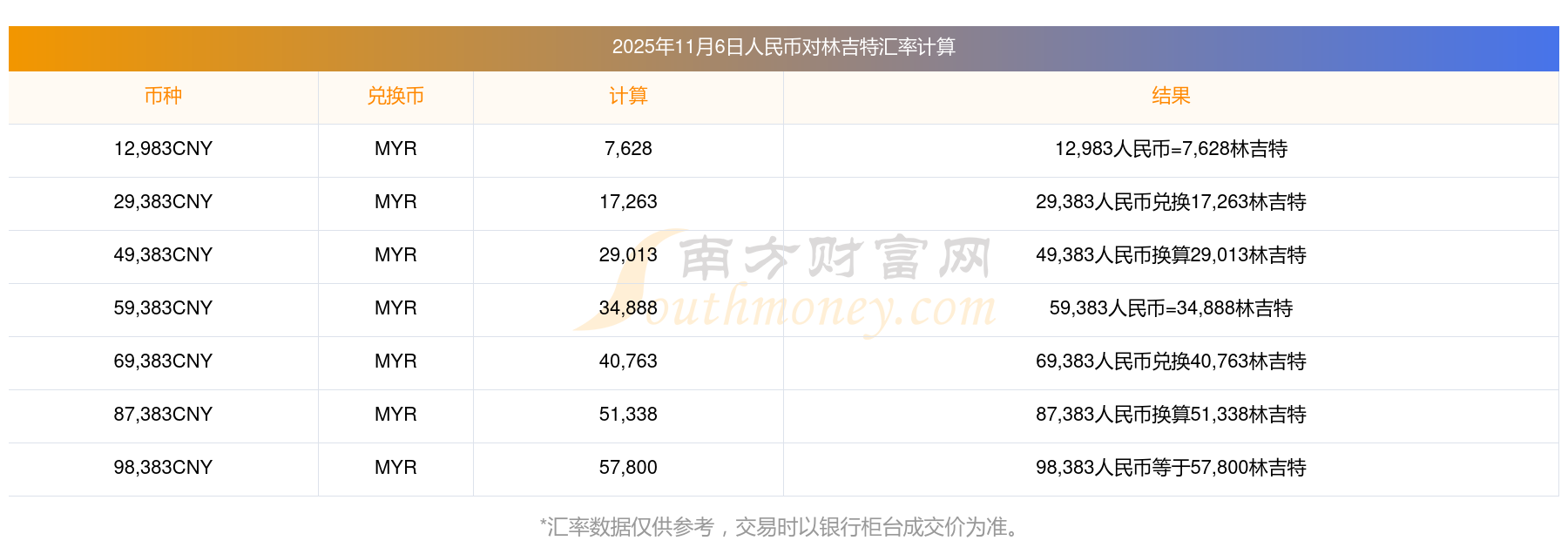 今日匯率:2025年11月6日人民幣兌林吉特匯價(jià)一覽
