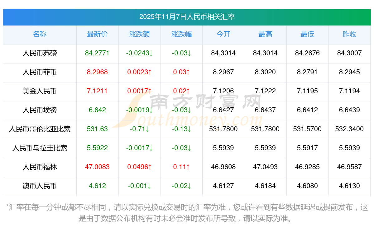今天匯率人民幣兌蘭特匯率行情2025/11/07