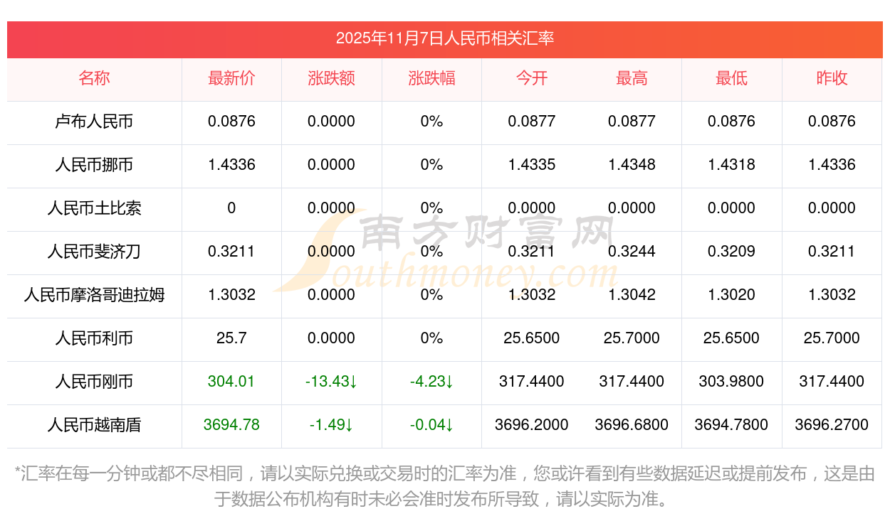 匯率在每一分鐘或都不盡相同,請以實際兌換或交易時的匯率為準,您或許看到有些數據延遲或提前發(fā)布,這是由于數據公布機構有時未必會準時發(fā)布所導致,請以實際為準。