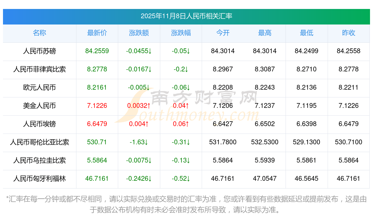 根據(jù)2025年11月8日匯率計(jì)算,人民幣兌換埃鎊匯率最新價(jià)6.647900,今開(kāi)價(jià)6.6427,昨收價(jià)6.6479,最高價(jià)6.6502,最低價(jià)6.6398。
