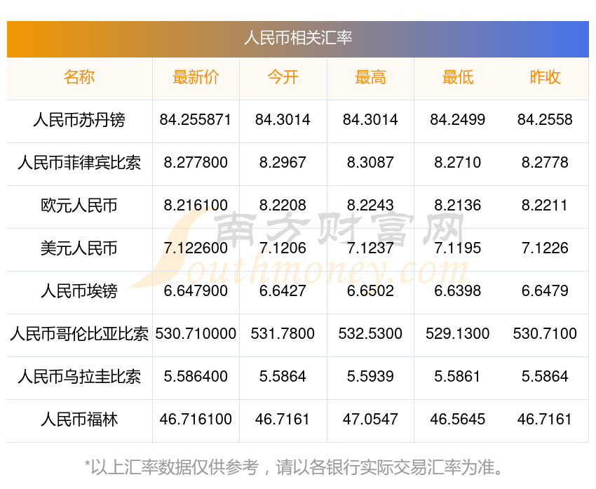 匯率數(shù)據(jù)僅供參考,交易時以銀行柜臺成交價為準。