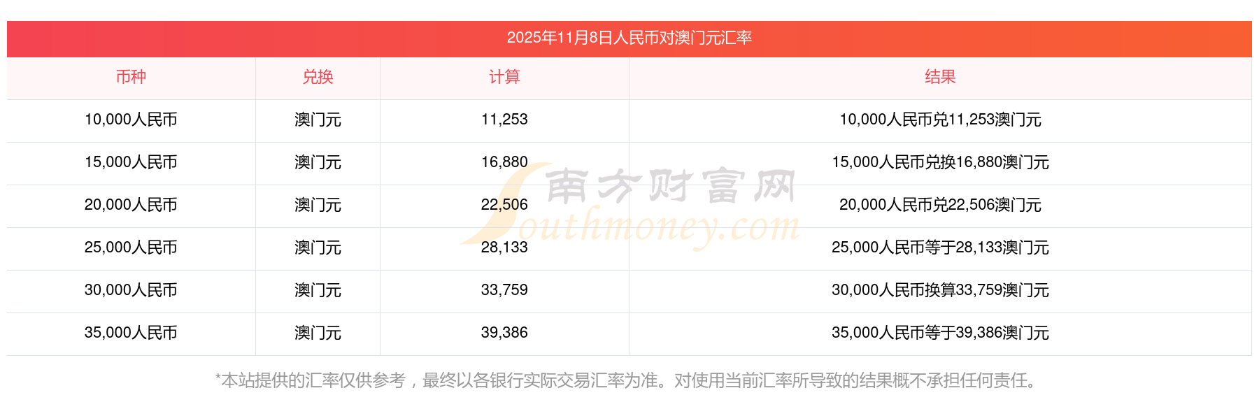 今日匯率中間價(jià):人民幣對澳門元匯率中間價(jià)多少2025-11-8