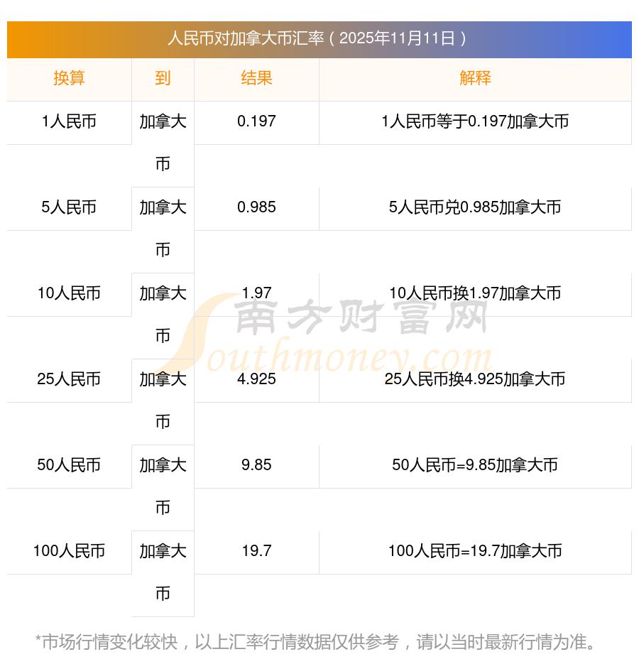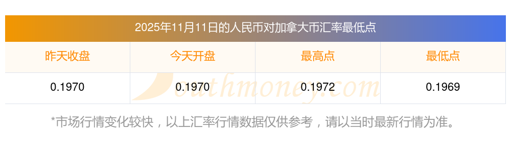 匯價查詢:2025年11月11日40人民幣兌加拿大幣匯價一覽