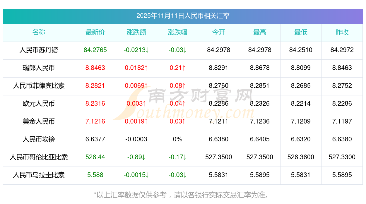2025年11月11日人民幣相關(guān)匯率查詢
