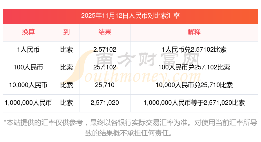 最新:1人民幣對(duì)比索2.57102元