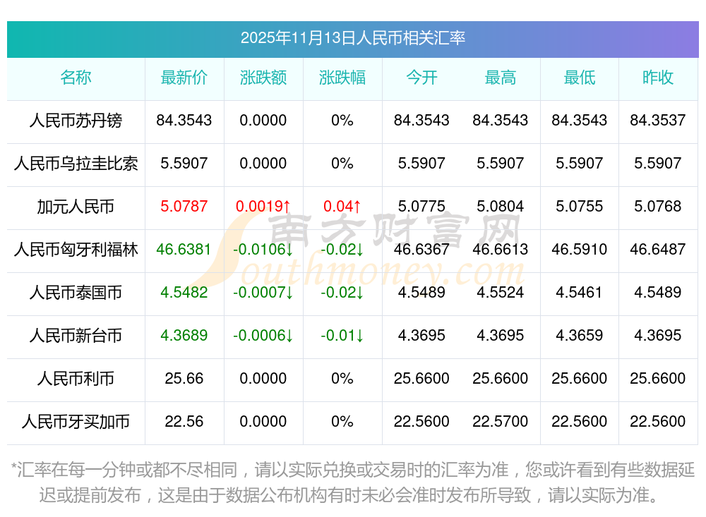 2025年11月13日人民幣相關(guān)匯率查詢