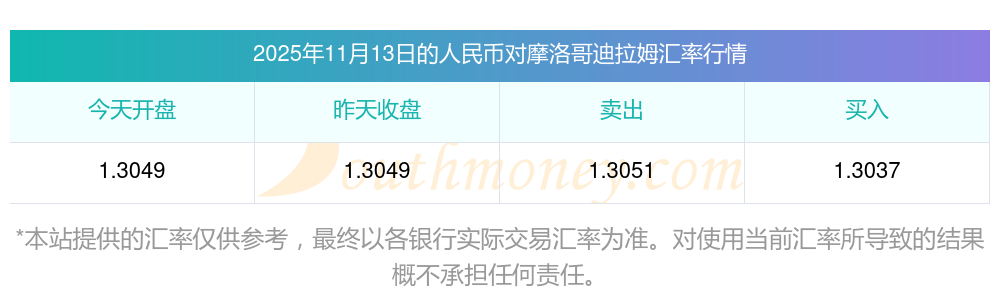 人民幣買入價多少 今天100人民幣兌摩洛哥迪拉姆有多少?(2025/11/13)
