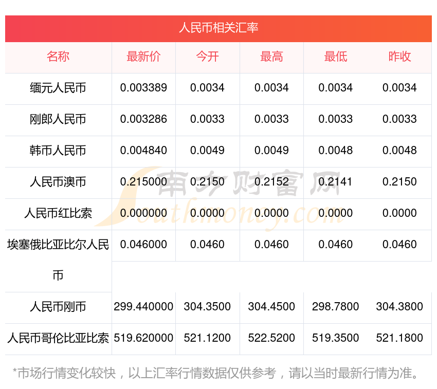 南方財(cái)富網(wǎng)為您提供人民幣對利幣匯率最新價(jià)格詳情。