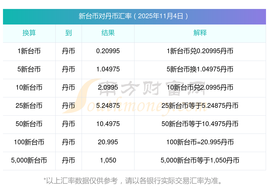 32新臺(tái)幣兌換丹幣結(jié)匯行情 新臺(tái)幣匯率報(bào)價(jià)查詢(xún)11-04