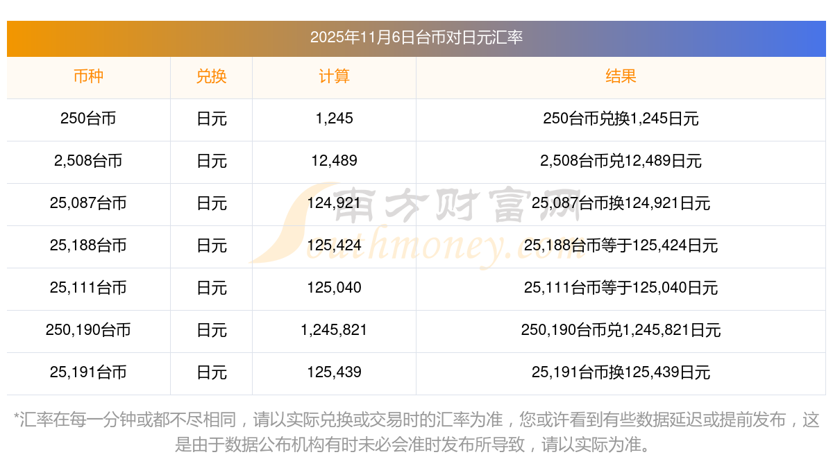 南方財(cái)富網(wǎng)為您提供臺幣對日元匯率最新價格詳情。