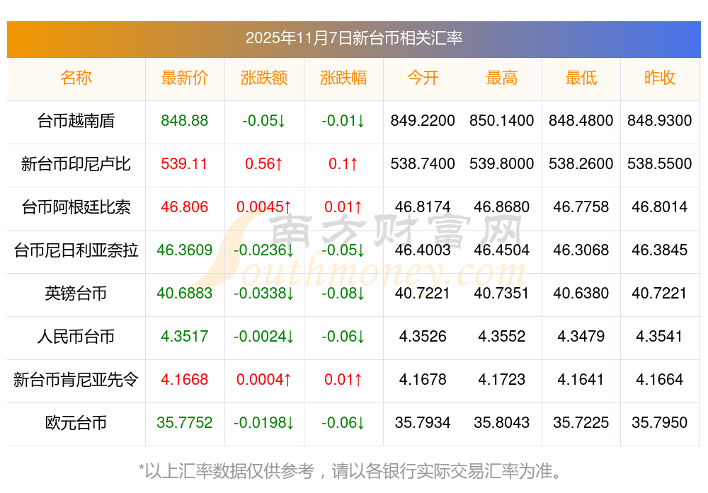 2025年11月7日新臺幣相關(guān)匯率查詢