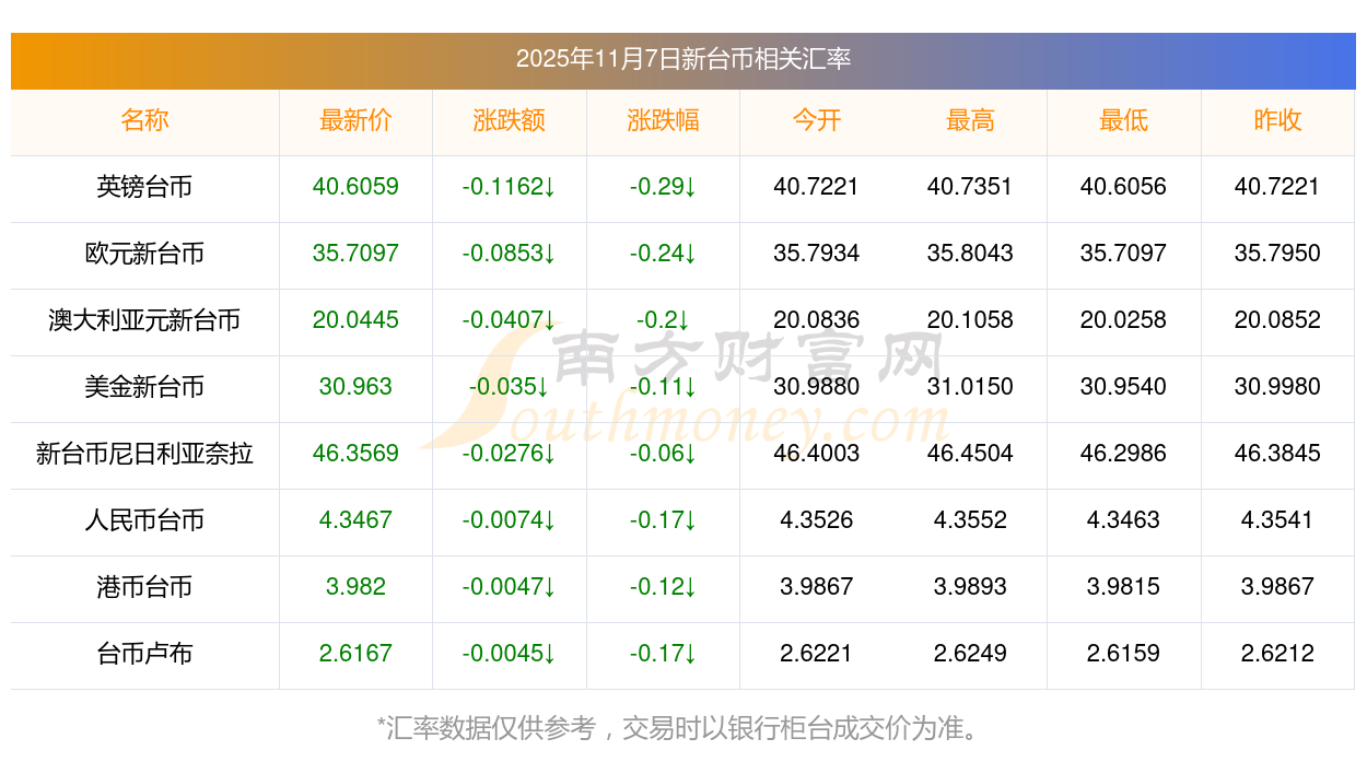 2025年11月7日新臺(tái)幣相關(guān)匯率查詢