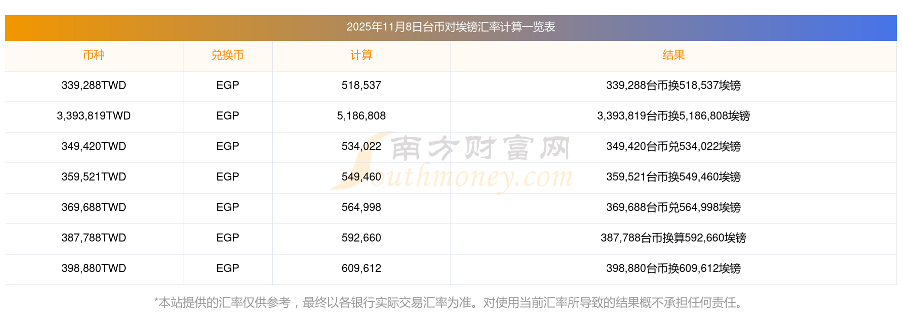 匯率實(shí)時(shí)更新!83臺(tái)幣兌換埃鎊匯率表(2025年11月8日)