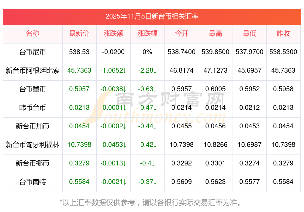 2025年11月8日新臺幣相關(guān)匯率查詢