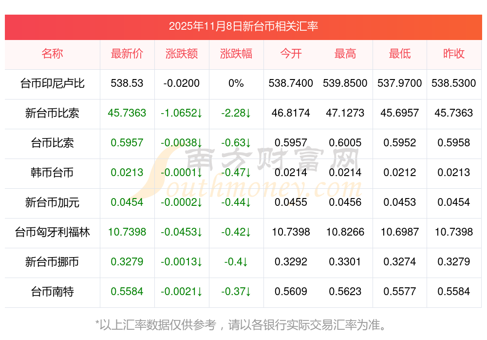 2025年11月8日新臺幣相關(guān)匯率查詢