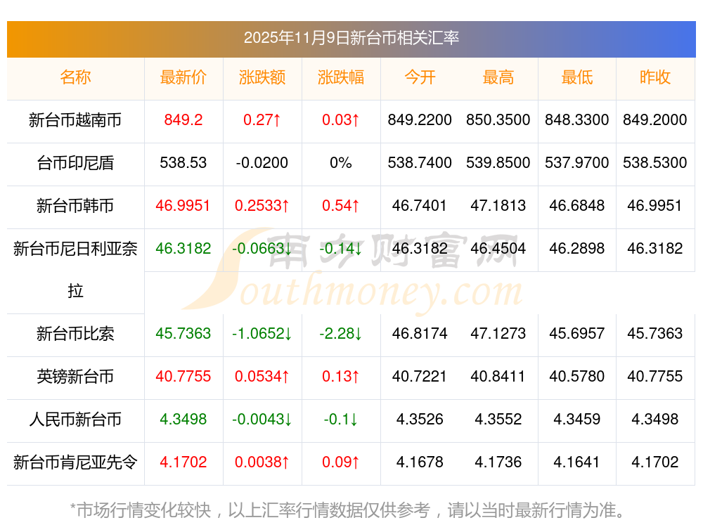 2025年11月9日新臺幣相關(guān)匯率查詢