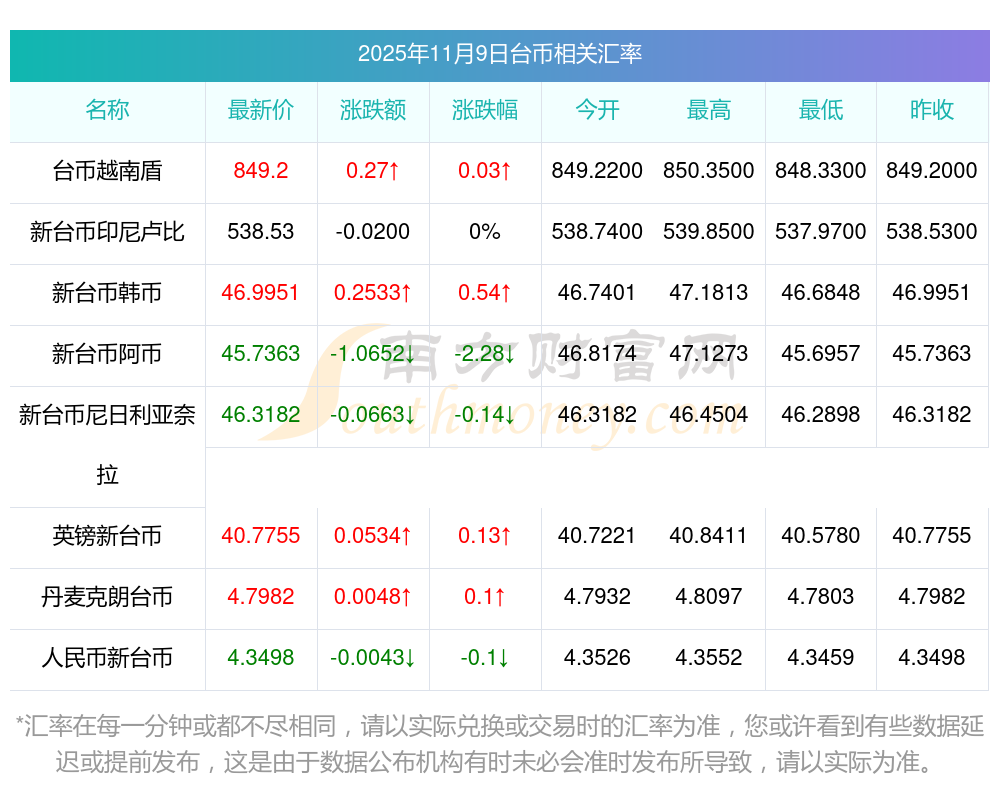 2025年11月9日臺(tái)幣相關(guān)匯率查詢