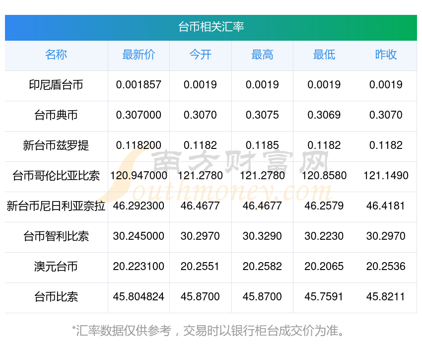 南方財富網(wǎng)為您提供臺幣對比索匯率最新價格詳情。