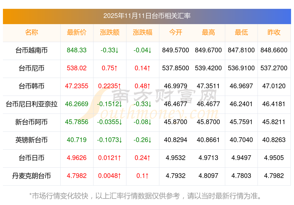 2025年11月11日臺(tái)幣相關(guān)匯率查詢