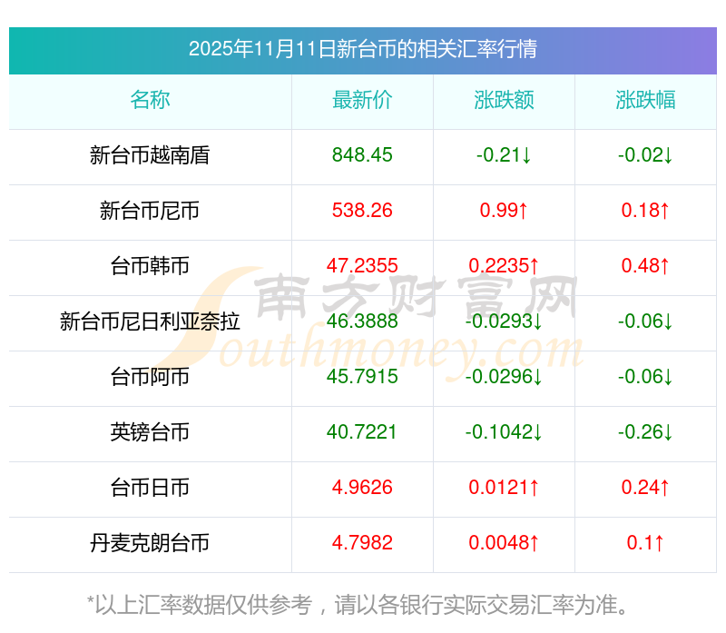 2025年11月11日新臺(tái)幣相關(guān)匯率查詢
