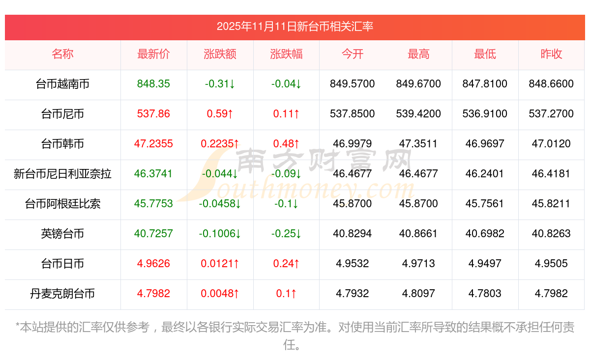 2025年11月11日新臺幣相關(guān)匯率查詢