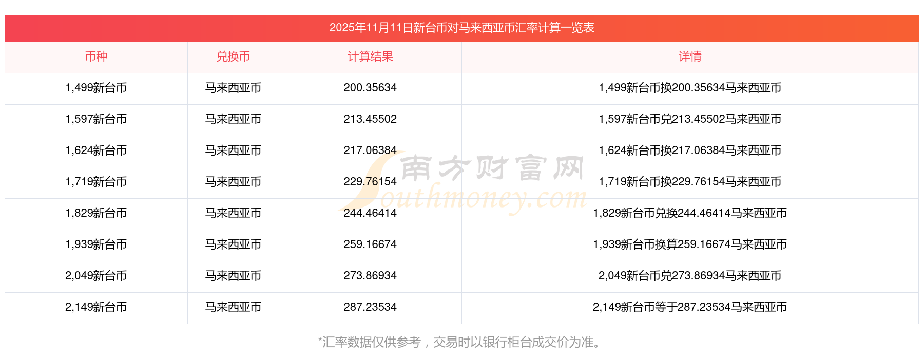 南方財(cái)富網(wǎng)為您提供新臺幣對馬來西亞幣匯率最新價格詳情。