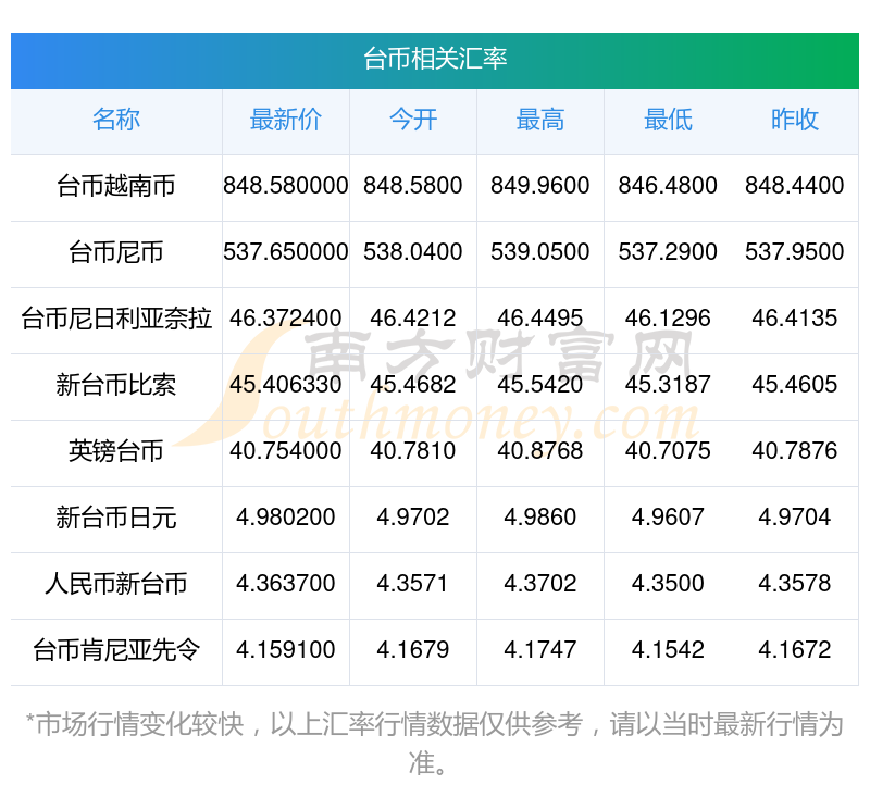 南方財(cái)富網(wǎng)為您提供臺幣對林吉特匯率最新價(jià)格詳情。