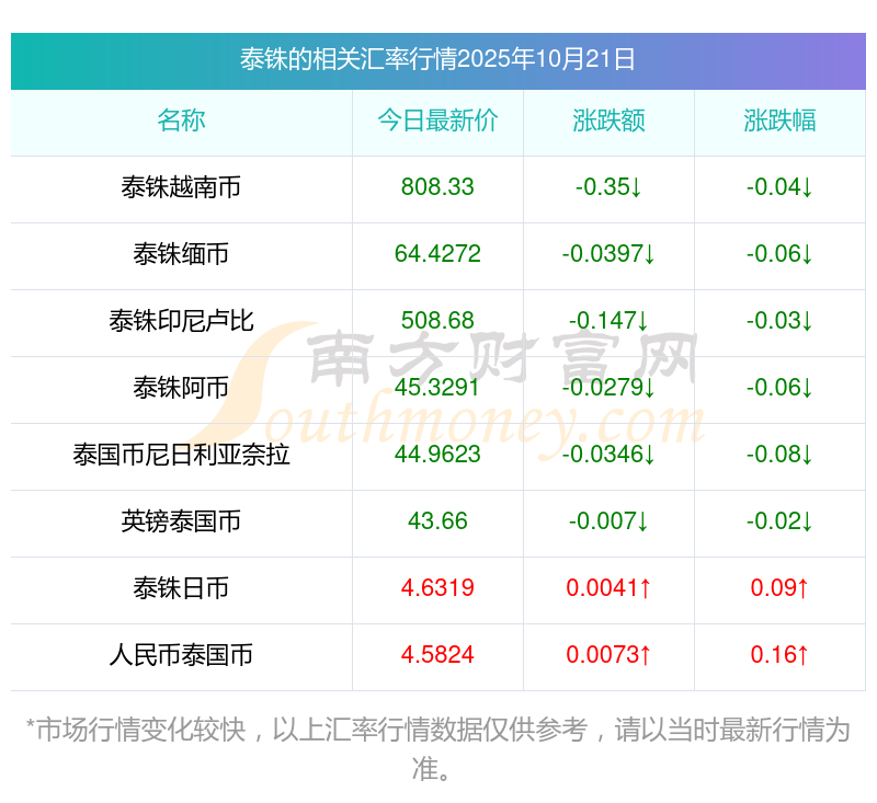 南方財富網(wǎng)為您提供泰銖對智利比索匯率最新價格詳情。