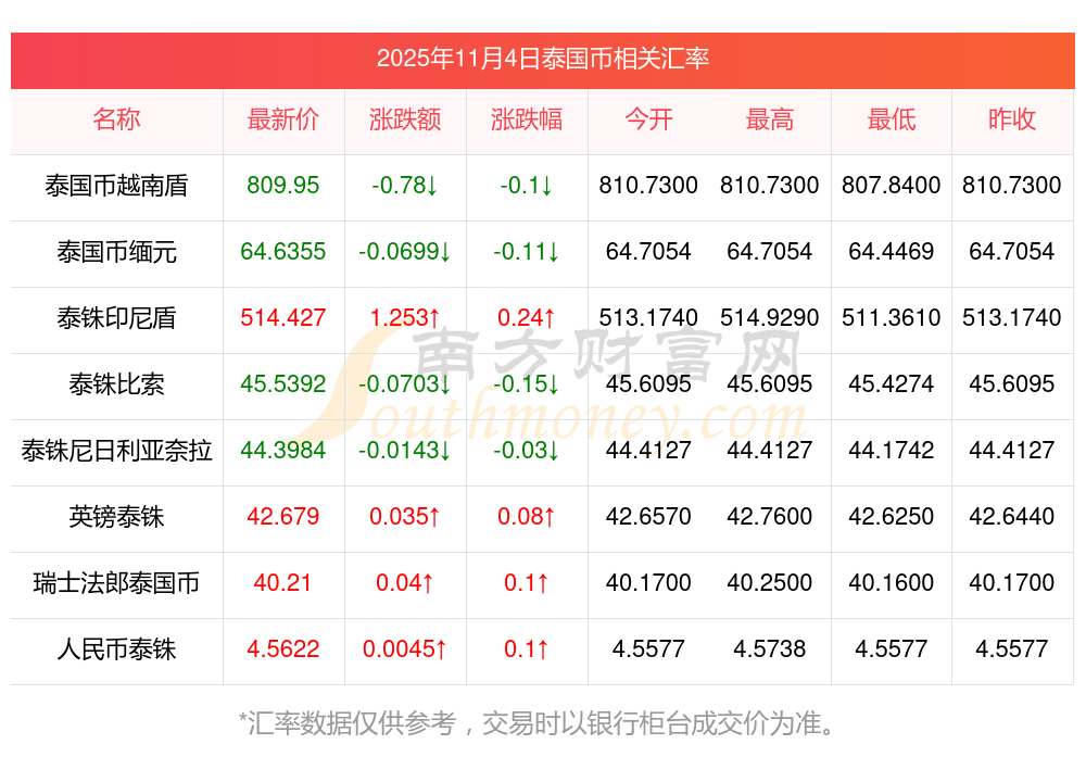 2025年11月4日泰國(guó)幣相關(guān)匯率查詢