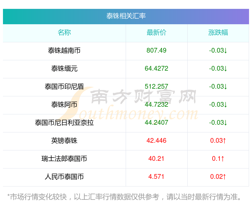南方財富網(wǎng)為您提供泰銖對智利比索匯率最新價格詳情。