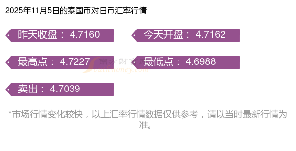 泰銖兌日元匯率記錄2025/11/5 今天泰銖兌日元匯率是多少?
