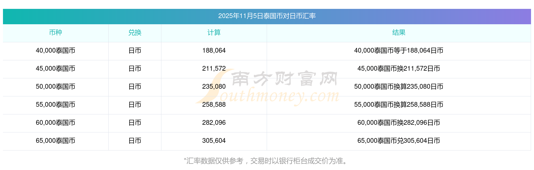 南方財富網為您提供泰國幣對日幣匯率最新價格詳情。