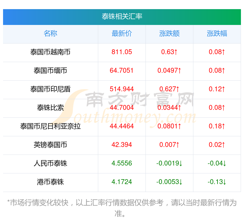 南方財(cái)富網(wǎng)為您提供泰銖對(duì)摩洛哥迪拉姆匯率最新價(jià)格詳情。