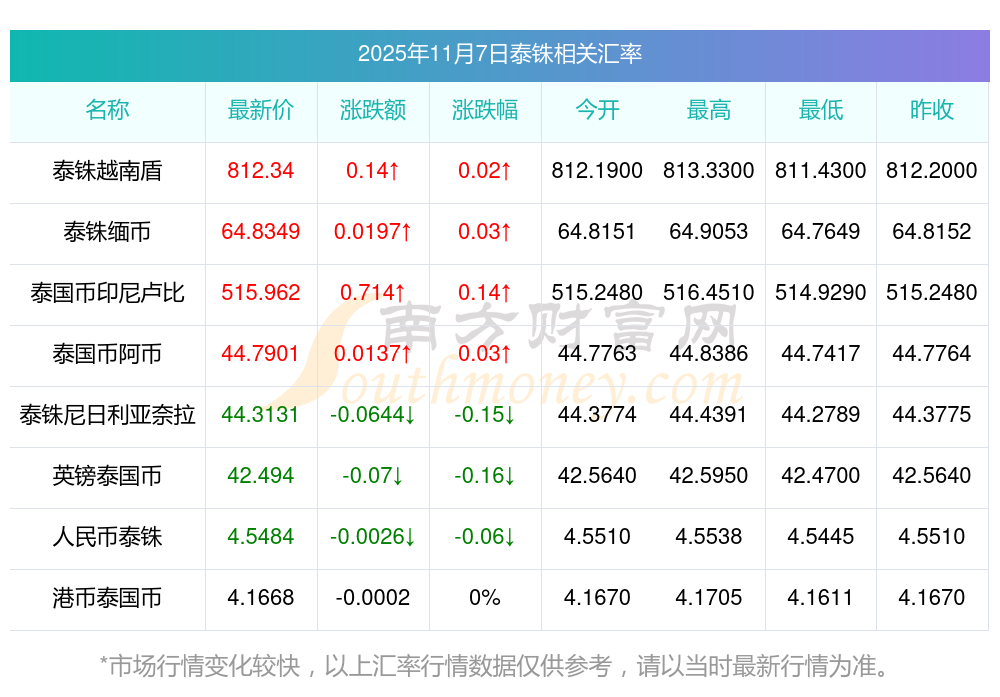 根據(jù)2025年11月7日匯率,泰銖兌換捷克克朗匯率最新價(jià)0.651707,今開(kāi)價(jià)0.6510,昨收價(jià)0.6510,最高價(jià)0.6520,最低價(jià)0.6500。