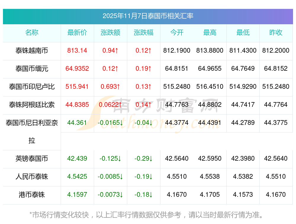 2025年11月7日泰國幣相關匯率查詢