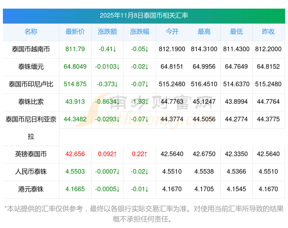 2025年11月8日泰國(guó)幣相關(guān)匯率查詢