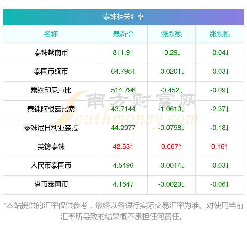 南方財富網(wǎng)為您提供泰銖對尼日利亞奈拉匯率最新價格詳情。