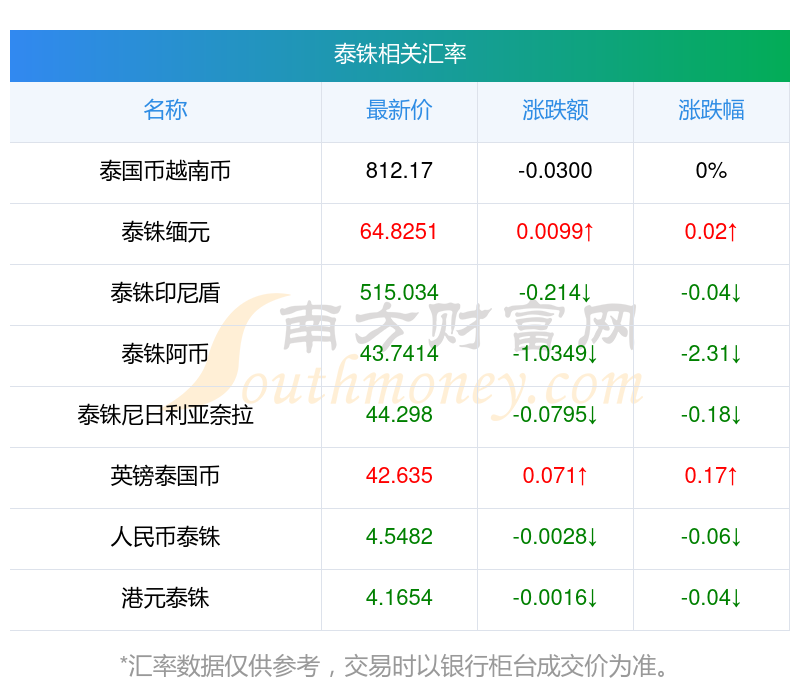 南方財富網(wǎng)為您提供泰銖對歐元匯率最新價格詳情。