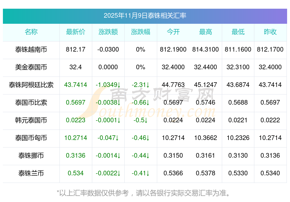 2025年11月9日泰銖相關(guān)匯率查詢