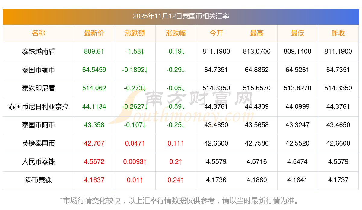 2025年11月12日泰國幣相關(guān)匯率查詢