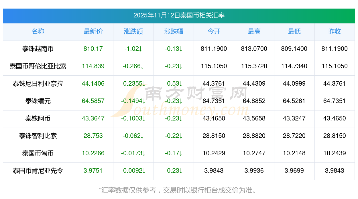 2025年11月12日泰國幣相關匯率查詢