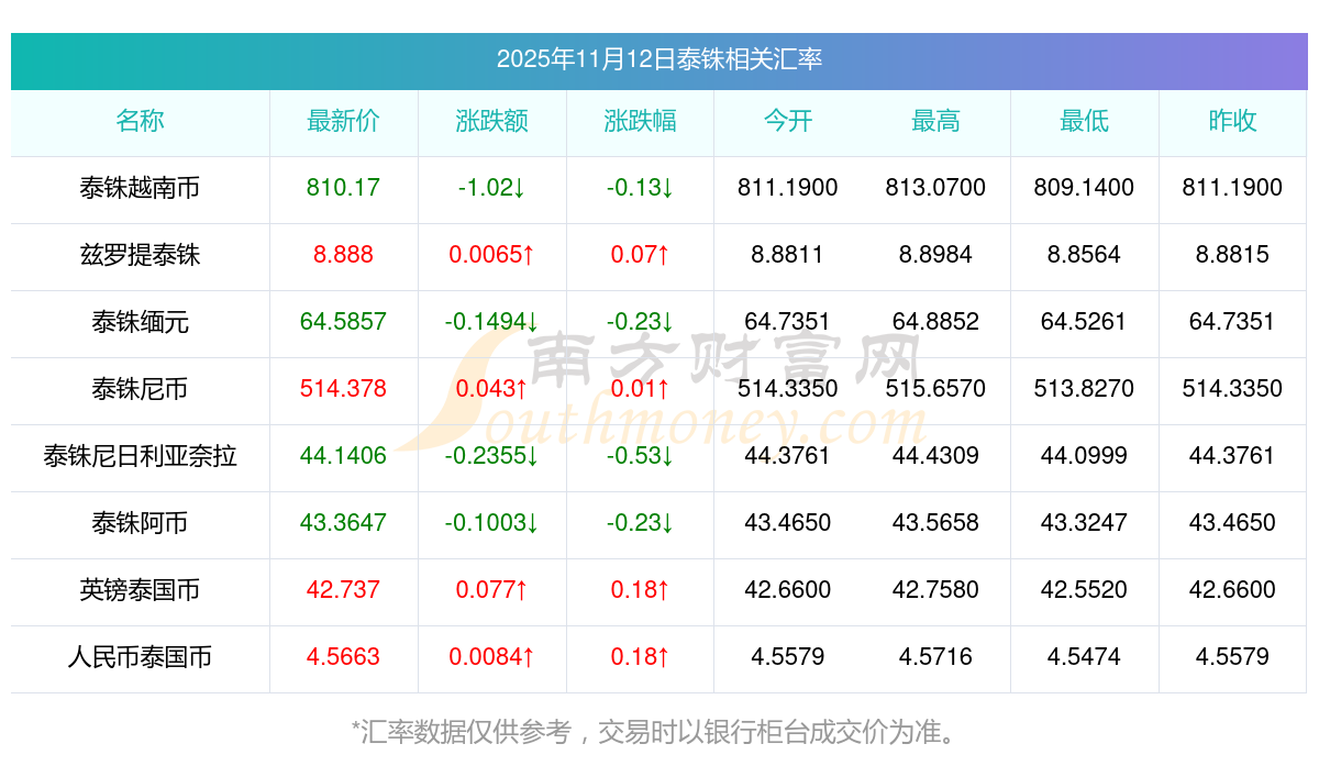 2025年11月12日泰銖相關(guān)匯率查詢(xún)