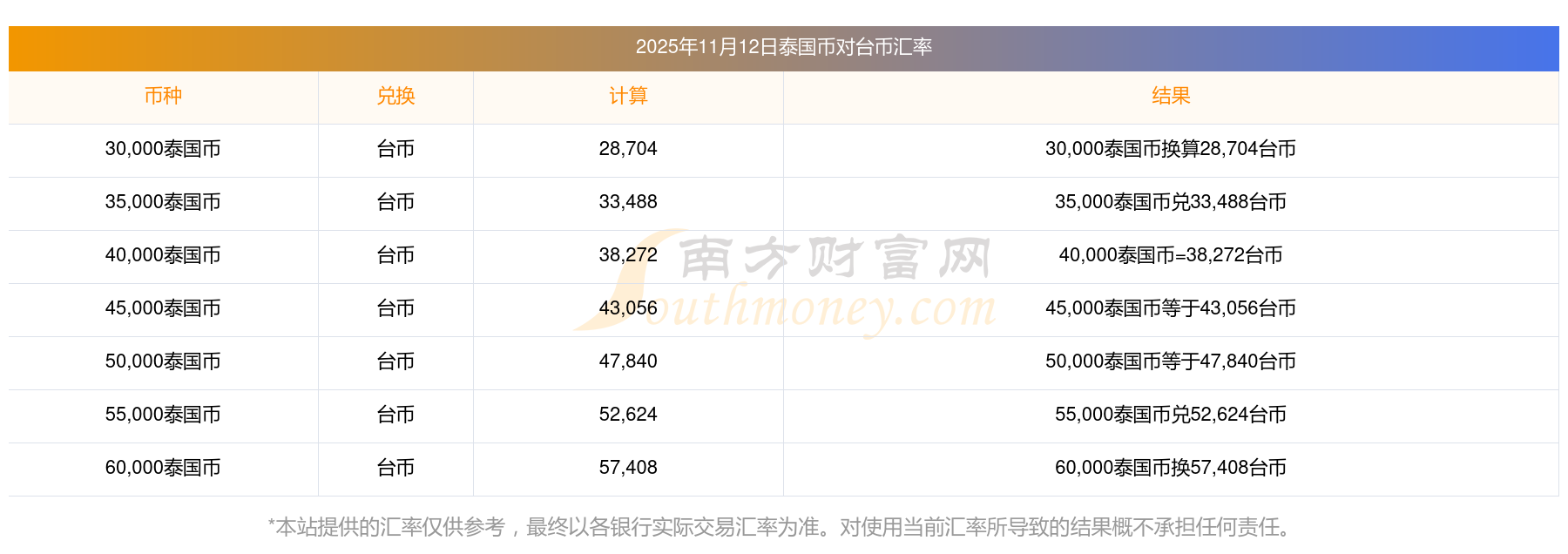 南方財富網(wǎng)為您提供泰國幣對臺幣匯率最新價格詳情。
