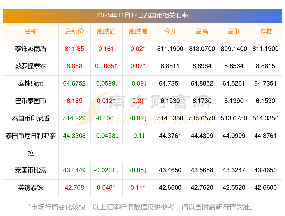 泰國幣匯率調(diào)整嗎?121泰國幣與臺幣匯率是多少2025-11-12