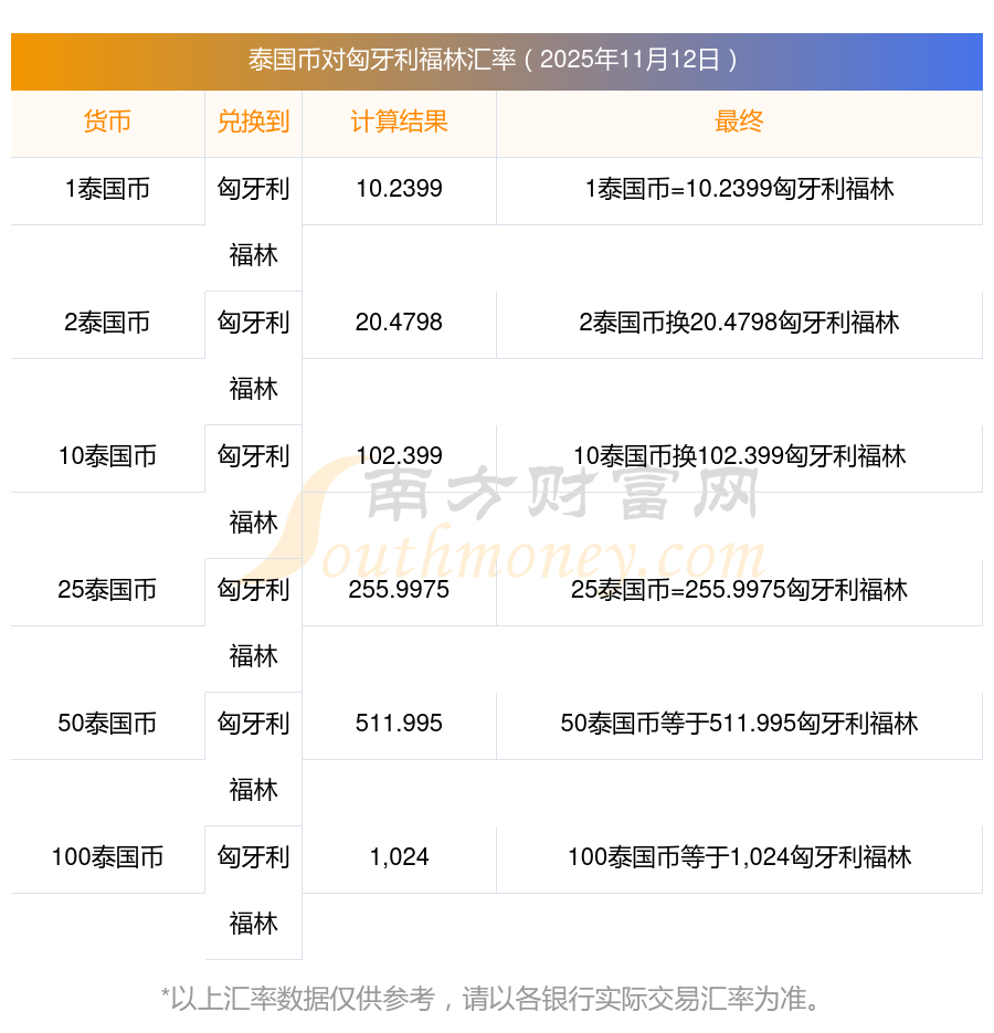 今天匯率價:泰國幣1000多少匈牙利福林2025年11月12日