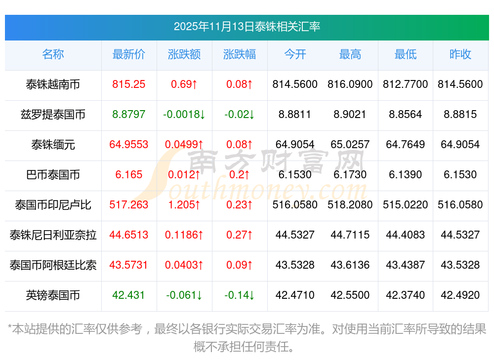 根據(jù)2025年11月13日匯率,泰銖兌換澳元匯率最新價(jià)0.047106,今開價(jià)0.0473,昨收價(jià)0.0473,最高價(jià)0.0473,最低價(jià)0.0470。