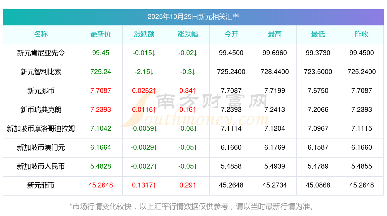 2025年10月25日新元相關(guān)匯率查詢