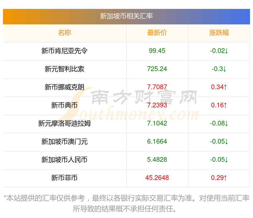 2025年10月25日新加坡幣相關(guān)匯率查詢