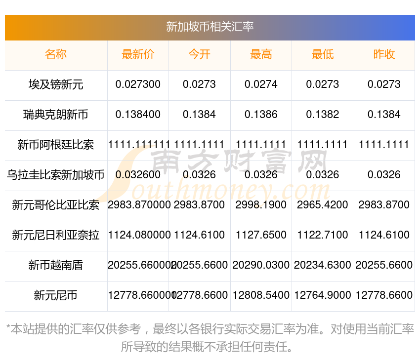 2025年10月26日新加坡幣相關(guān)匯率查詢