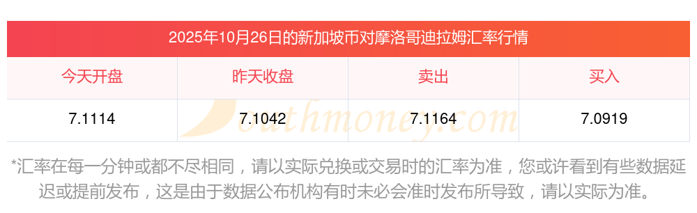 最新2025年10月26日新加坡幣兌摩洛哥迪拉姆匯價(jià)?